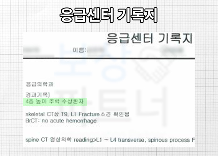 사실 척추 수술을 정말 최후에 하는 거라고, 칼을 대는 것 아니라고 들으신 분들이 많을 겁니다. 하지만의뢰인의 상황은 흉추와 요추 방출성 골절로 골절된 파편이 신경을 눌러 향후 신경 손상의 우려가 있었습니다.