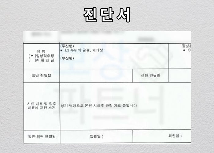 이 진단으로 최소 3개월 동안 TLSO 허리 보조기 착용하시면서 골절된 뼈가 다 붙을 때 까지 안정을 취하셔야 했습니다. 물론 일도 하지 못했죠. 저희에게 전화상담 주셨던 의뢰인께서는 가입한 보험 안에서 최대한의 보상을 원하셨습니다. 사실 누구나 그러고 싶겠죠. 보상파트너의 의뢰인은 얼마나 보상받으셨을까요?
