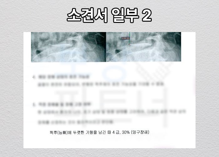 등뼈 압박골절로 인한 각도 변화는 측정하는 전문의마다 주관적인 소견이 들어갈 수 있습니다. 따라서 이를 뒷받침 할 수 있는 전문가의 손해사정 보고서도 필수입니다. 증빙 자료도 물론이죠.