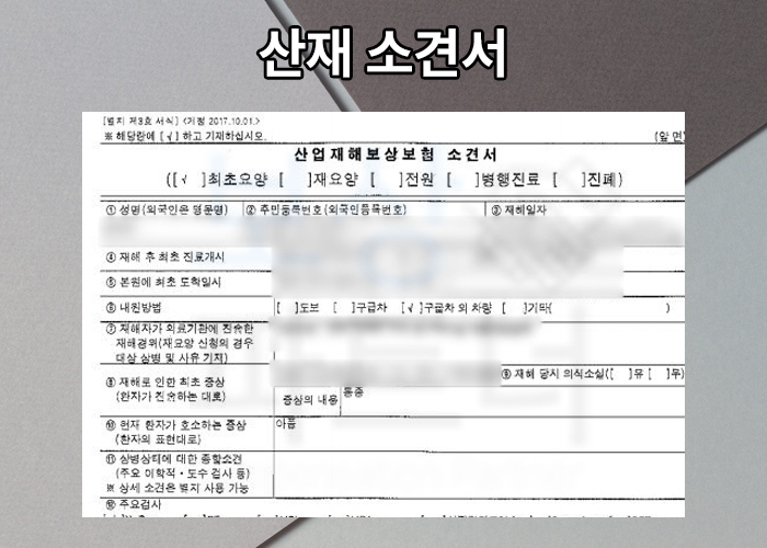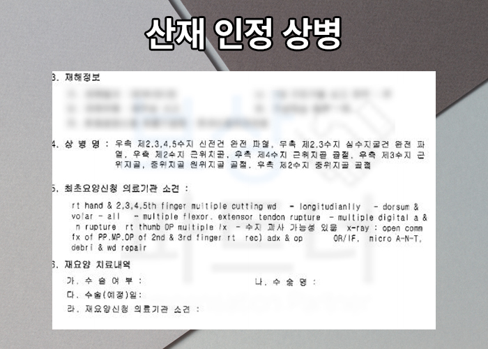 의뢰인께서는 처음 병원을 방문 했을 때부터 일하다 발생한 사고라고 말해주셨기 때문에 자연스러운 산재처리가 가능했습니다. 산재 최초요양 신청서를 작성 한 후 주치의의 소견서와 함께 관할 공단으로 서류를 제출하셨으며, 승인되었다는 연락을 받으셨죠.
