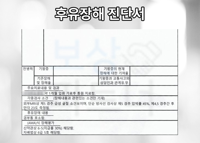 그 결과 위 사진처럼 의뢰인은 무려** 척추의 뚜렷한 장해 30%** 지급률에 해당하셨습니다. 저희는 위 장해진단서를 기초로 의뢰인의 손해를 사정하고 보험금 지급 주장을 하는 손해사정보고서를 작성하여 도움을 드렸고 뒷받침 할 수 있는 증빙 자료 준비도 도와드렸습니다.