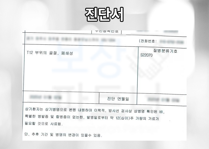 오늘은 흉추 12번 골절 사례였지만 환자분들에 따라 요추 1번골절일수도, 흉추 11번, 요추 2번 등등 다양한 부위의 척추가 골절되었을 수 있습니다. 모두 동일한 척추 부위이기 때문에 어디가 골절되었든 후유장해 보험금 알아보셔야 합니다.