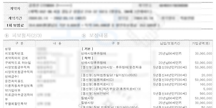 상해 사망 후유장해 기본계약과 특약으로 가입되어 있는 내용 보이시죠? **총 8,000만 원 담보 **가입되어 있습니다.