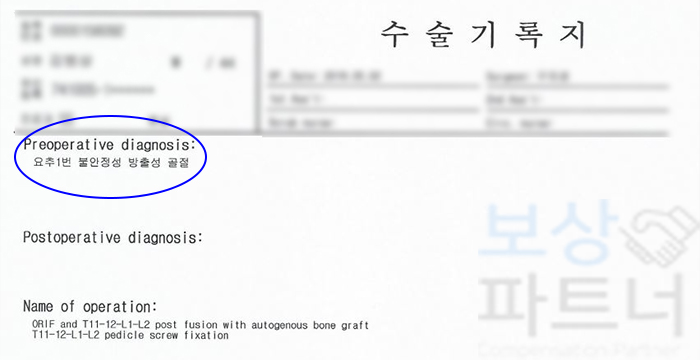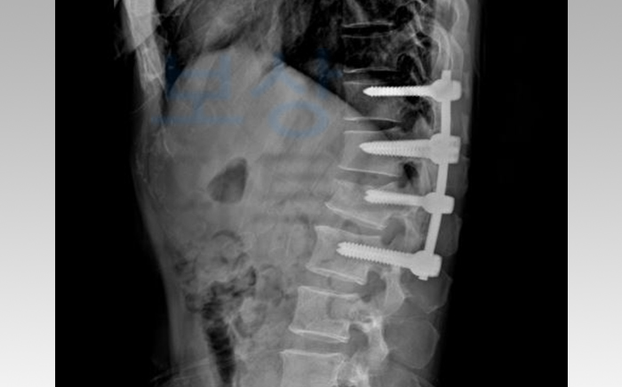 이 사고로 인해 허리골절을 당하셨는데 방출성 골절로서 허리뼈 골편이 뒤로 밀려서 이탈하는 심한 골절이었습니다. 자칫하다가 신경에 손상이 가게 되거나 마비 증상의 가능성까지 있기 때문에 수술을 통해서 치료를 진행하셨습니다.