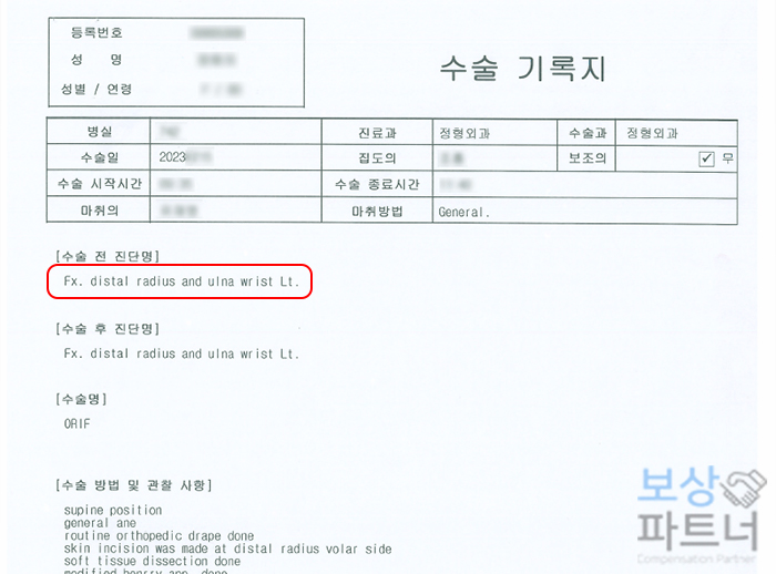 이처럼 금속판 내고정술을 시행하시고 시간이 지나며 서서히 회복하셨는데요. 하지만 재활치료 후에도 손목 움직임이 예전 같지 않으셨습니다. 그래서 환자분께서는 후유증과 관련된 보상 정보를 찾다가 저희에게 연락을 주시게 되었습니다.