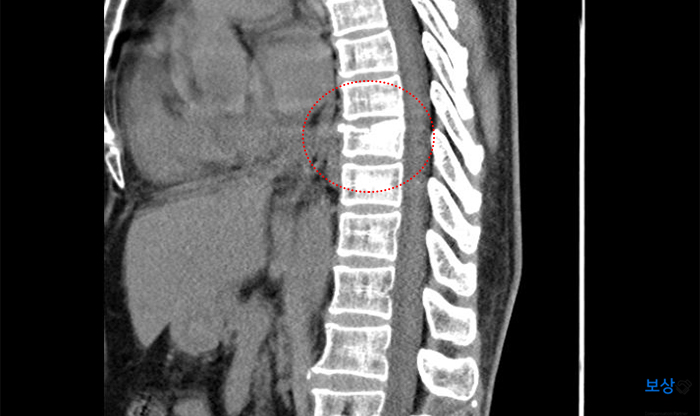 P 님은 자택으로 올라가시던 중 계단에서 넘어져 허리 쪽에 충격을 받으셨습니다. 병원에 내원하여 정밀 검사 결과 **"흉추 9번 급성 압박골절" **진단을 받으셨는데요.