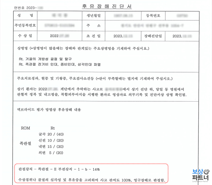 저희는 후유장해 진단서 발급부터 보상 절차를 상세히 안내해 드렸고, 최선의 보상을 받으실 수 있도록 면밀히 준비하였습니다.