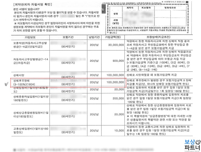 고객의 정당한 후유장해 보험금을 받으실 수 있도록 도와드릴 수 있었던 성공적인 사례였습니다. 그렇다면 지금 전문가 무료상담 받아보시기 바랍니다! **《보상파트너》**는 십수 년 경력의 능력 있는 손해사정사와 보험사 조사관 출신이 함께하고 있습니다. 대형 보험사를 상대로 최선의 보험금 청구 결과를 약속드립니다.