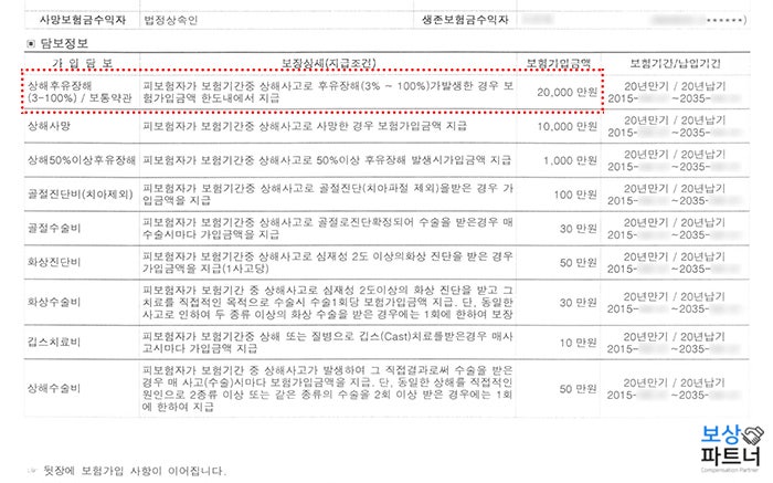의뢰인께서는 **상해후유장해 가입 금액이 2억 원 이상 **되셨는데요. 고액의 담보일수록 전문가의 도움을 받으시는 것이 좋습니다. 먼저 사고 후 6개월이 지난 시점에서 공신력 있는 병원 전문의로부터 객관적인 장해 평가를 받을 수 있었습니다.