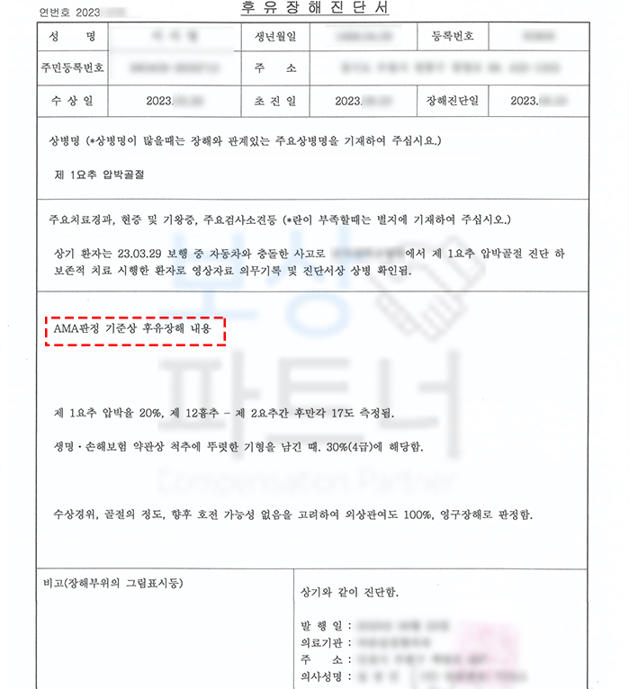 또한 **개인보험 **후유장해 보험금 청구를 위해 AMA 평가도 진행되었습니다.