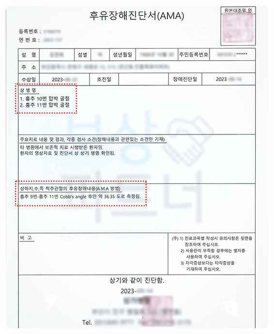 김△△ 님은 약 2개월간 TLSO 척추보조기 착용한 채로 자연적 치유 방법으로 회복하셨는데요. 이후 진단비 및 후유장애 청구 관련하여 저희 사무실에 문의를 주셨고, 면담 끝에 사건을 맡겨주셨습니다.