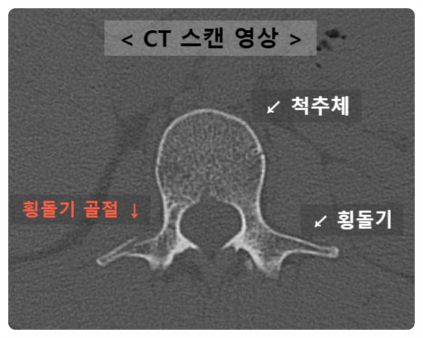 횡돌기골절은 척추체의 압박골절(Compression Fracture)에 비해 외형적으로 크게 드러나지 않는 경우가 많습니다. 하지만 주변 근육과 인대 손상, 염증 반응이 장기화될 수 있으므로 각별한 주의가 필요합니다.