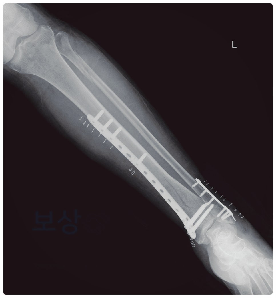 좌측 경골 원위 간부 분쇄골절 [S8250] 비골 원위부 골절 [S82430]