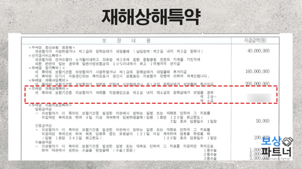 이어지는 내용을 통해서 자세히 설명하겠습니다. 많은 분들이 하나씩은 가입되어 있는 실손(실비) 또는 운전자보험에는 '상해후유장해' 와 같은 특약이 있습니다. 이 특약은 산재 장해급여를 수령하고도 별도로 보험금 청구를 할 수 있는데요.