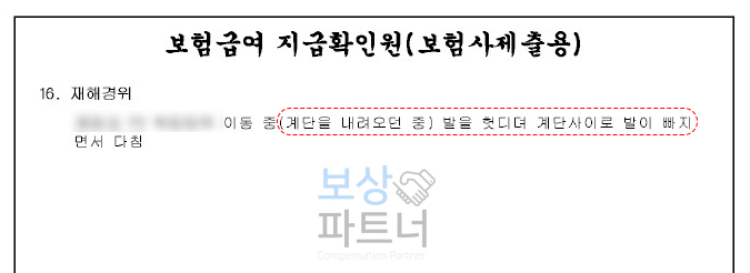 이후 저희 사무실로 연락을 주셔서** 근재 청구**를 함께 진행하기로 결정하였습니다. 우선 사고 경위를 면밀히 검토하여 사업주의 안전관리 소홀 부분을 입증하였고, 작업장 계단의 구조적 결함과 안전조치 미비를 구체적으로 제시했습니다.