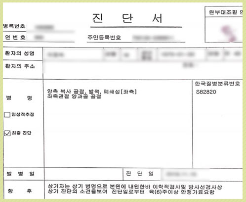 의뢰인은 집에서 다치셨는데요 주방에서 발을 헛디디면서 발목에 큰 통증을 느끼셨고 바로 대학병원 응급실로 가 검사를 받았습니다.