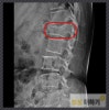상자들이 차례대로 쌓아져 있는 것 같죠? 그런데 넘어지거나 다른 요인으로 충격을 받으면 상자 모양의 뼈가 위아래로 눌리게 됩니다. 발로 상자를 밟으면 어떻게 될까요? 그와 비슷하게 되는 건데요, 아래 사진을 보면 찌그러진 척추뼈 모양이 보이죠.