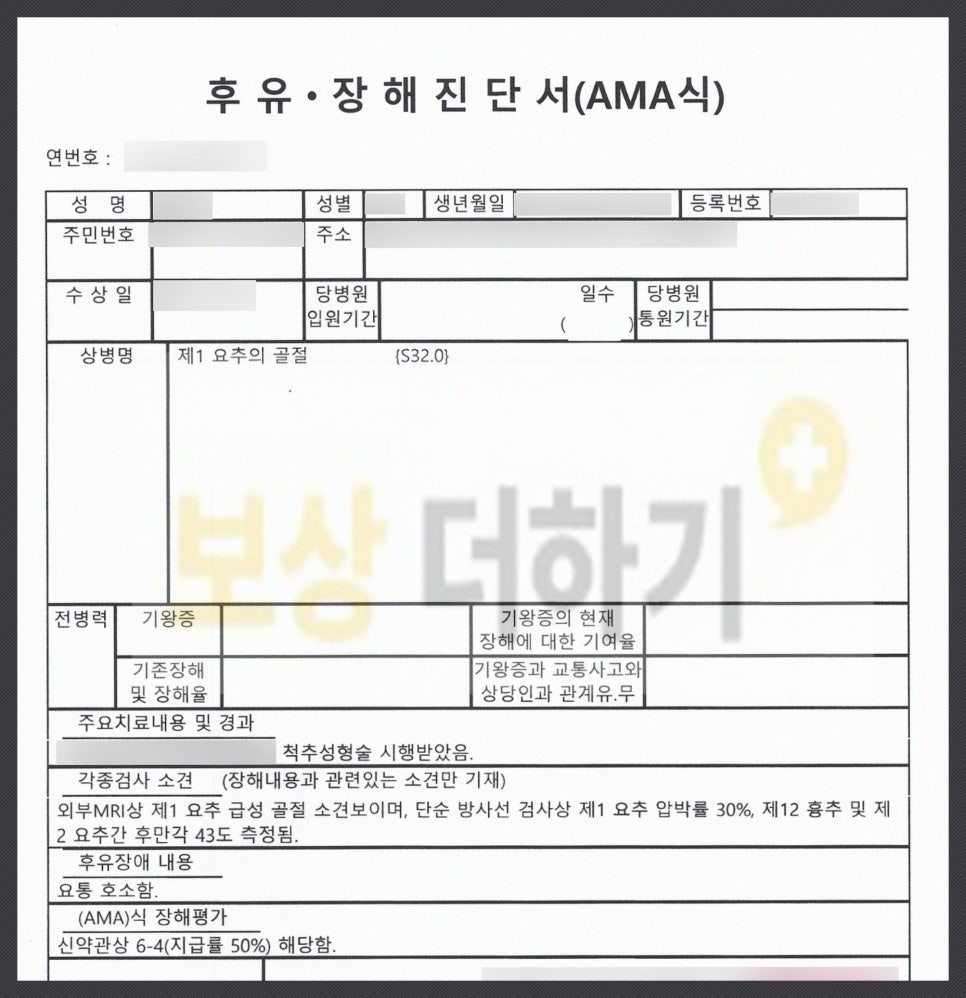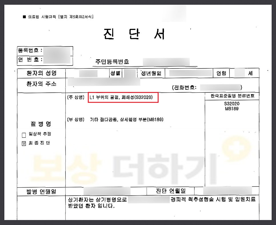 척추골절 후유장해 수많은 보상 성공사례를 보유한 손해사정사가 함께합니다 보상더하기