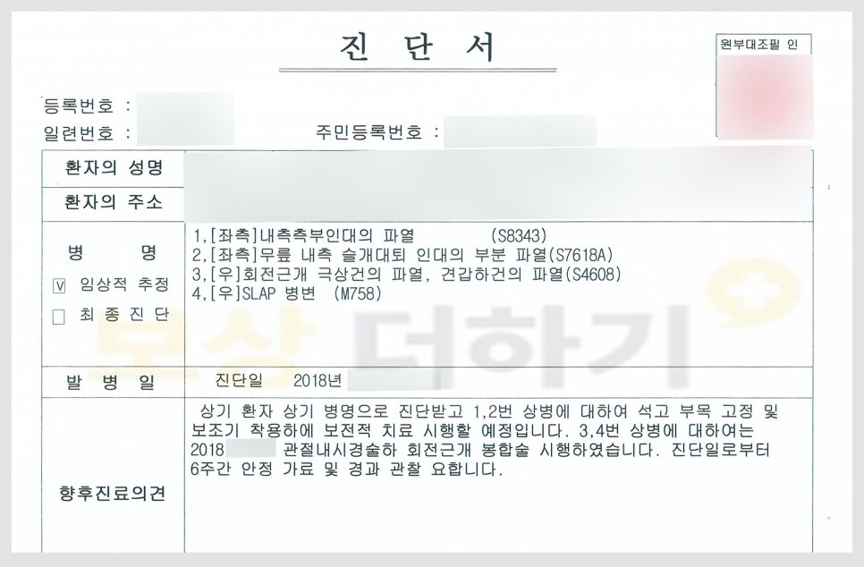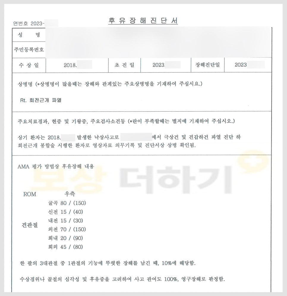 오늘은 회전근개 파열에 대해 알아보고 이 부상으로 인해 후유장해 보험금 받은 사례도 살펴보겠습니다. 읽는 분들께 유익하길 바랍니다^^
