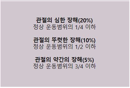 팔을 옆으로 들거나 회전을 할 때 동작이 원활하게 이루어지지 않을 수 있습니다. 이렇게 운동범위에 제한이 발생하면 이 부분에 대한 후유장해 평가를 받을 수 있는데요. 사고 후 6개월이 지난 시점에 의사로부터 받을 수 있습니다.