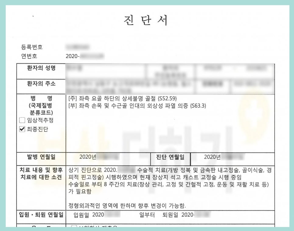 오늘 소개해 드릴 사례자가 손목 골절로 수술을 받은 후 개인보험에서 얼마나 보상받으셨는지 알아보면서, 비슷한 상황에 계신 분들께 실제적인 도움이 되셨으면 합니다.
