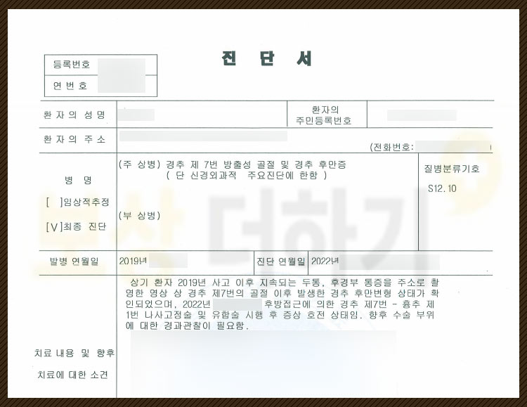 오늘의 사례자분 역시 C7(경추) 골절로 거동이 불편했지만 보험금 청구부터 어려움을 겪으셨습니다. 하지만 전문가와 함께하셔서 어떤 결과를 얻었는지, 살펴보면서 도움 얻으시기 바랍니다.