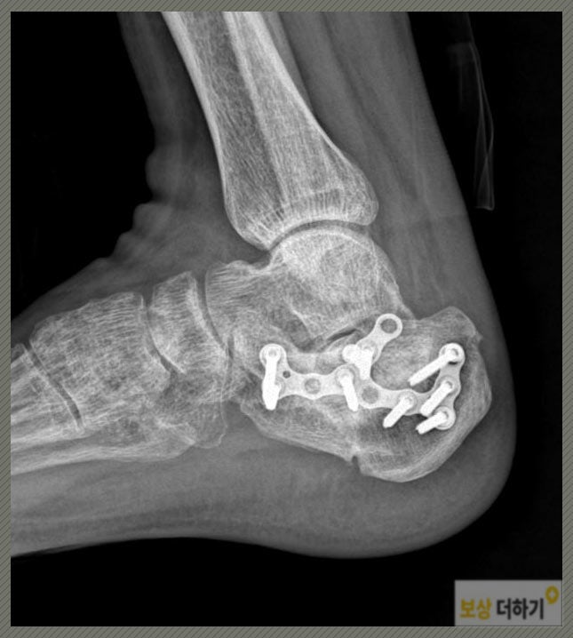 종골 골절은 뼈가 여러 개로 나뉘는 분쇄골절 형태가 많은데요. 치료와 회복이 더욱 어려운 것으로 수술 치료가 필요합니다. P 님은 뼈를 제 위치에 맞춰 금속판과 나사못을 이용해 고정하는 정복술을 받으셨어요.