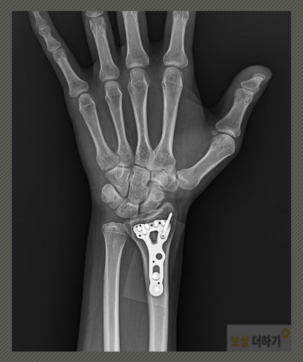 다친 부위를 절개해서 뼈의 위치를 잘 맞춘 다음, 움직이지 않게 금속판으로 고정하는 수술을 시행 받으셨죠. 이렇게 수술을 받고 나면 뼈가 자연스럽게 회복되는 걸 기다려야 하는데요. 그 기간 동안 움직이지 않고 손목이 고정되어 있다 보니 필연적으로 관절이 굳게 됩니다. H 님은 회복을 위해 1년 가까이 치료를 받으며 고생을 많이 하셨습니다. 그런 만큼 개인보험에서 최대 보상을 받기 위해 저희에게 손해 사정을 위임하셨어요.
