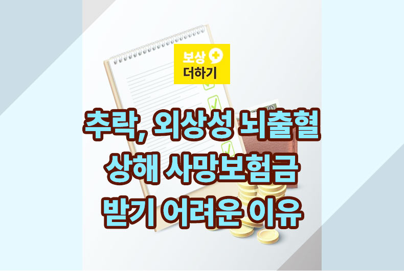 추락, 외상성 뇌출혈을 위의 조건에 비추어 생각해 보겠습니다. A 씨는 베란다에서 이불을 털다가 무게 중심이 밖으로 쏠리면서 추락해 사망하셨습니다. B 씨는 교통사고로 머리에 심한 충격을 입어 외상성 뇌출혈 진단을 받았습니다. 그에 따라 입원을 하여 치료를 받던 중 돌아가셨습니다. 두 사건 모두 질병과 같은 내부적인 원인이나 고의적인 행동으로 발생한 것이 아니기 때문에 상해 또는 재해 사망보험금 지급이 당연히 이루어질 거라고 생각할 수 있습니다. 그런데!! 현실적으로는 보상을 받는 것이 매우 어렵습니다. 대체 왜 그럴까요?
