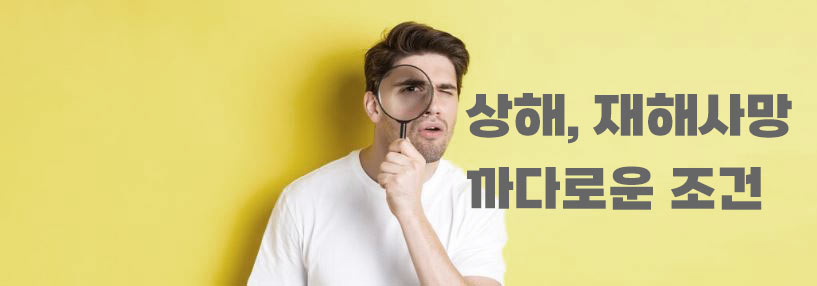 이 중에서 오늘은 상해, 재해 사망에 대해 알아볼 것입니다. 이 둘의 경우, 보험료가 싼 반면 받을 수 있는 보상은 크다 보니까 보험사에서 절대 쉽게 지급하지 않습니다. 일반 또는 질병 사망을 주장하면서 최대한 적은 금액을 주려고 합니다. 그럼, 보험료가 싼 이유는 무엇일까요? -> 조건이 매우 까다롭기 때문입니다.