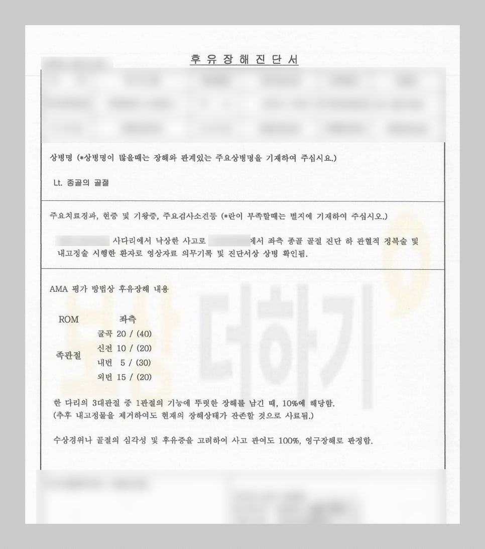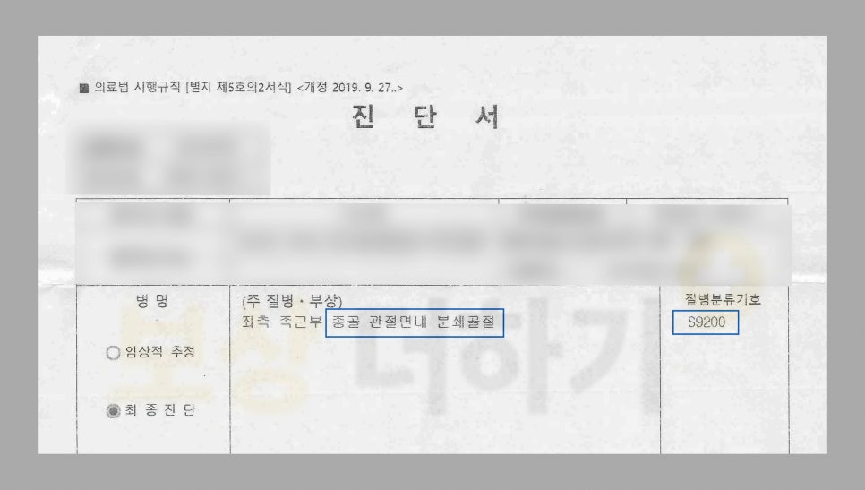 발뒤꿈치 분쇄 골절 상해 후유장해 보험금 보상 - 실제 사례 -