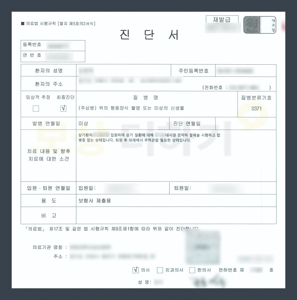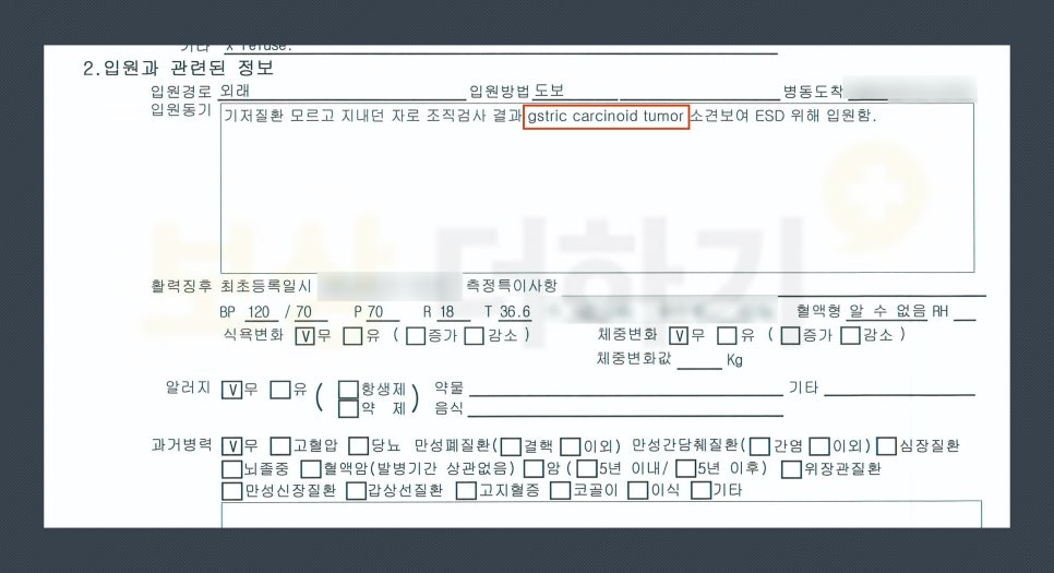 위 신경내분비종양 암 진단비 전액 지급 사례 gastric carcinoid tumor