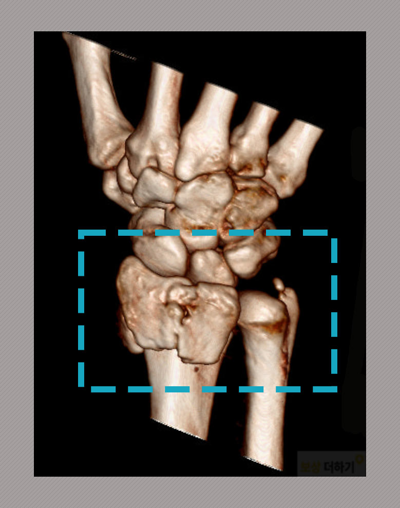 오른쪽 손목 부상이었고, CT 등 정밀 검사를 한 결과 요골 원위부 관절 내 분쇄 골절 및 척골 경상돌기 골절 등 진단되었습니다.