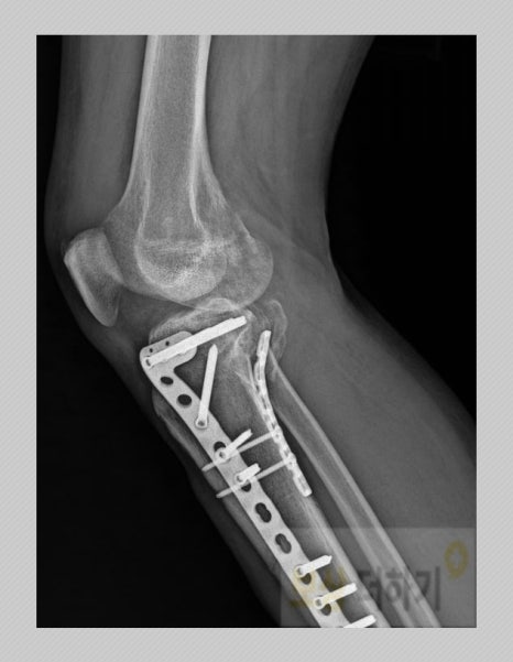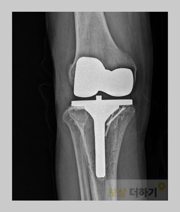 요추 3번 골절에 대해서는 비수술 보존치료를 행하셨습니다. 무릎 (슬관절)은 안타깝게도 부정유합, 외상후 관절염이 있었고 결국 인공관절 전치환술을 받으셔야 했습니다. 무릎 관절면은 서있거나 걸을 때 주로 체중이 실리는 안쪽, 바깥쪽 면과 일어나거나 무릎을 굽히고 펼 때 힘을 받쳐주는 앞쪽 면이 있습니다. 전치환술은 3군데 모두를 인공관절로 바꿔주는 것입니다.