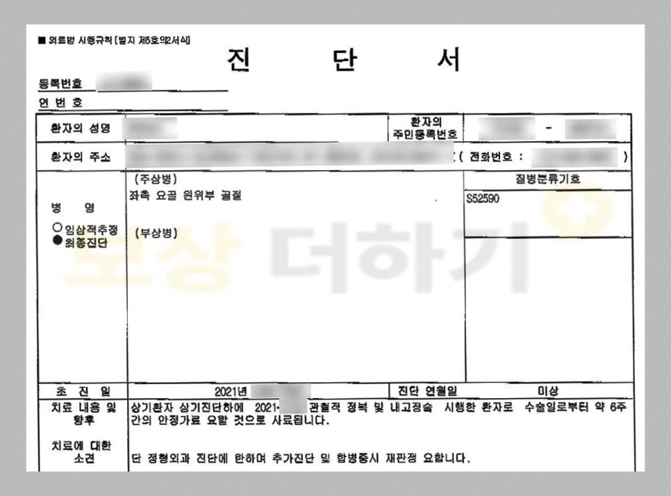 오늘은 원위 요골 골절로 수술 치료를 받으신 분들이 꼭 알아보시고 받으셔야 하는 후유 장해 보상에 대해 말씀드리려고 합니다. 몇 년 전에 발생한 사고였어도 가능하니 혹시 아직 못 받으셨다면 본인도 해당이 되는지 확인해 보세요!