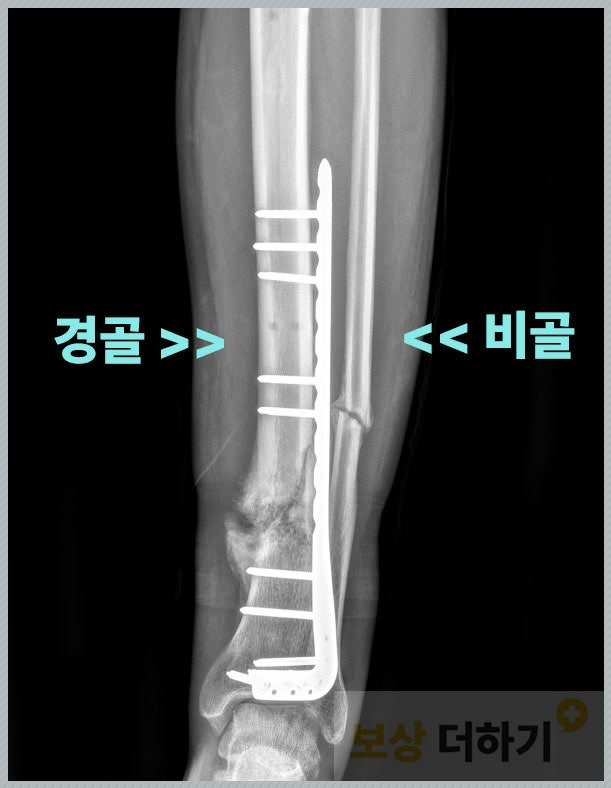 상대적으로 더 굵은 뼈인 경골, 또는 비골까지 모두 다치신 경우에는 수술 및 재활 후에도 후유증이 남을 가능성이 높습니다. 위 사진의 당사자와 같이 발목에 인접해 있는 곳이라면 더욱 그러하죠. "발목이 잘 안 움직여요" 이와 같은 증상이 있으시다면 후유 장해에 대한 보험금 청구 가능합니다.