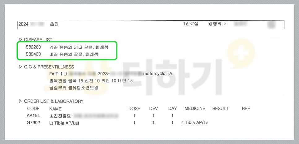길에서 오토바이에 치여 다리 경비골 골절 s82280 s82430