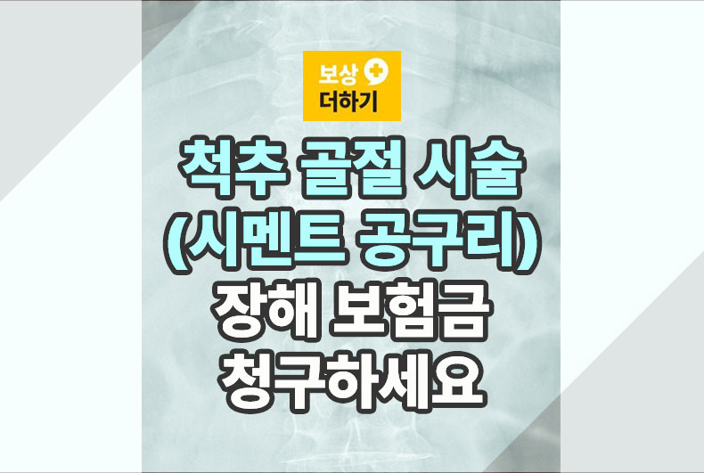 척추 골절되어 척추체 성형술 시멘트, 공구리 시술하셨나요? 그럼, 치료비 뿐만 아니라 장해 보험금도 청구하시기 바랍니다. 대부분 수백만 원 이상 받으시는 비교적 큰 금액이니 잘 알아보시면 좋겠습니다. 사례와 함께 좀 더 자세히 살펴볼까요?