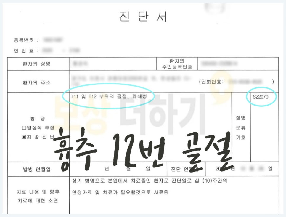 - 검사 결과 척추 골절 (흉추 12번)