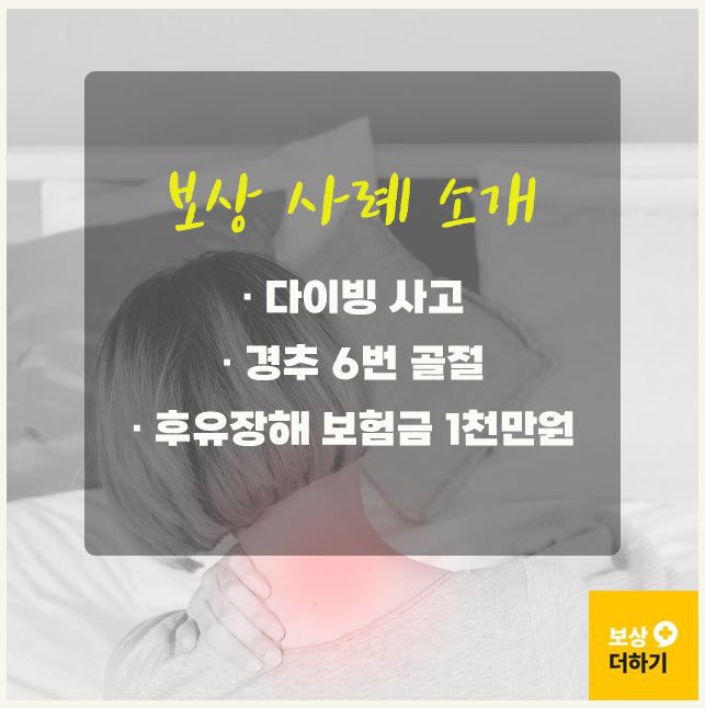 오늘은 경추 6번 골절 부상으로 후유 장해 보험금 1천만원 받으신 조 00 님 사례와 함께 관련 정보 알아보겠습니다.