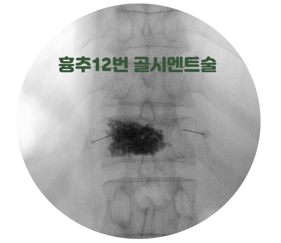 박 ** 님이 받으신 골시멘트 주입술은 척추체 성형술(Vertebroplasty)을 말합니다. 골다공증 환자 가운데 이 시술을 받은 분들이 많으실 겁니다. 골다공증으로 약해진 척추는 사소한 충격에도 잘 무너지는데요, 보존적 치료로는 회복이 더디고 통증이 오래가는 경우가 많습니다. 빠르게 통증을 줄여 움직임을 빨리 회복, 수술 부담 또한 적어서 이러한 치료 방법을 흔히 선택합니다.